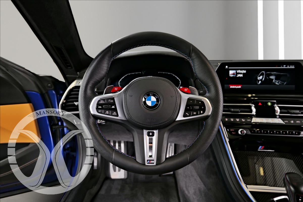máme na prodej BMW M8 Competition Gran Coupé. Vozidlo je lakované v modré matné barvě (Frozen Marina Bay Blue) Interiér vozidla je černo hnědé kombinaci (Leder Merino Schwarz / Midrand). Další výbava vozidla:20 Palcové disky