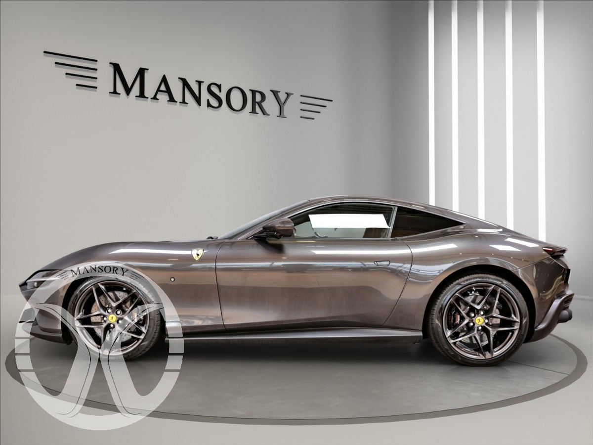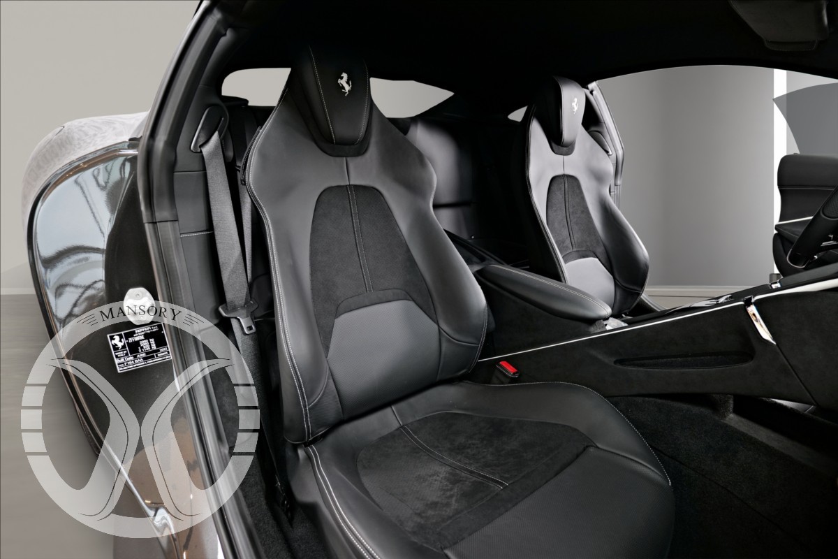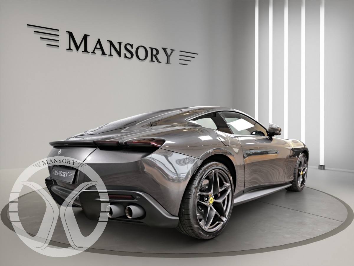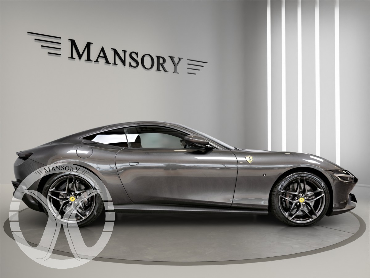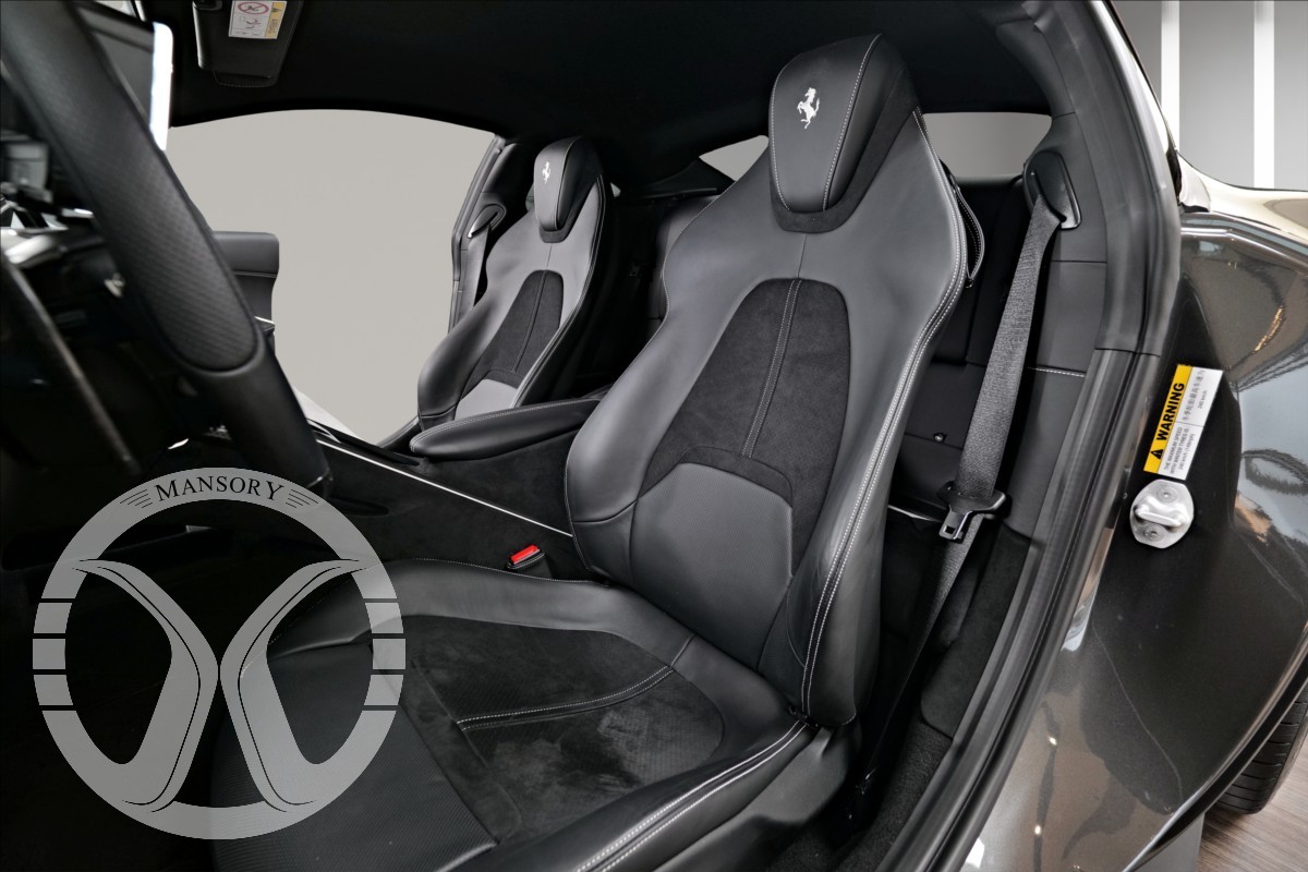 nabízíme Vám k prodeji Ferrari Roma lakované v šedé metalické barvě - Ferrari historical colours - Canna di Fucile. Interiér vozidla je v černém koženém provedení.