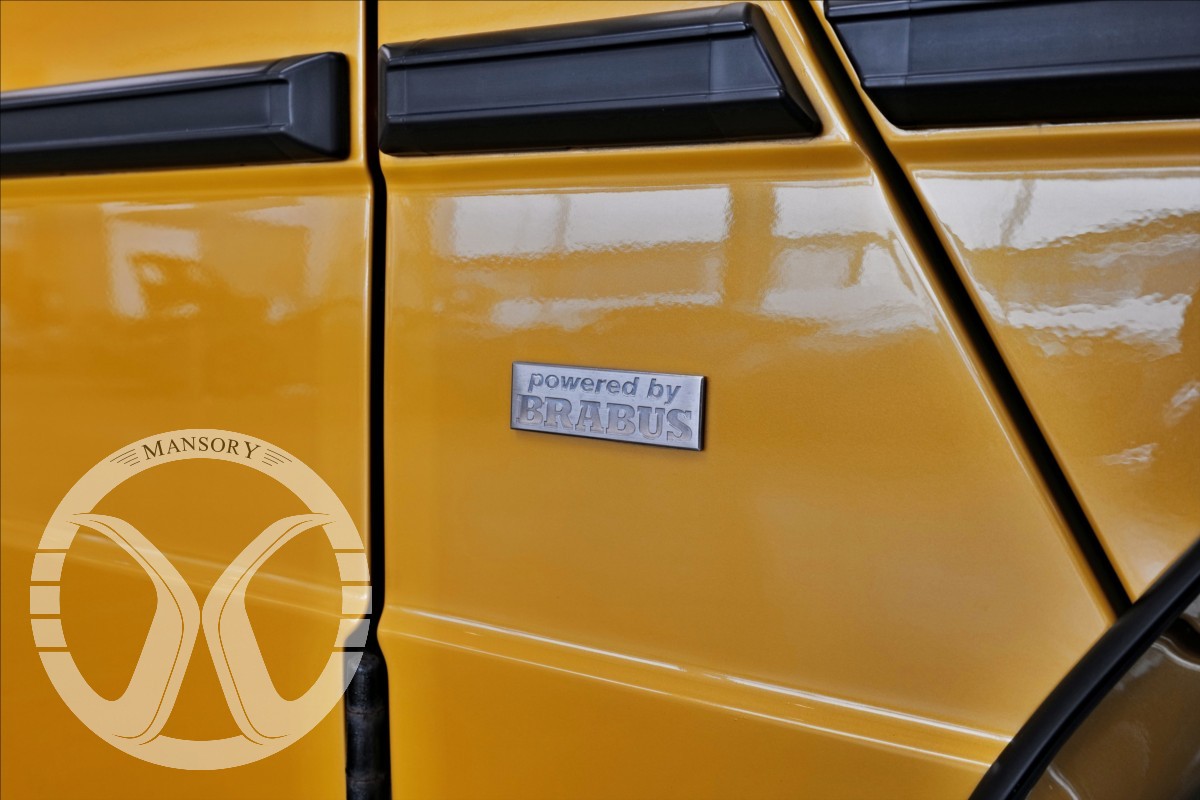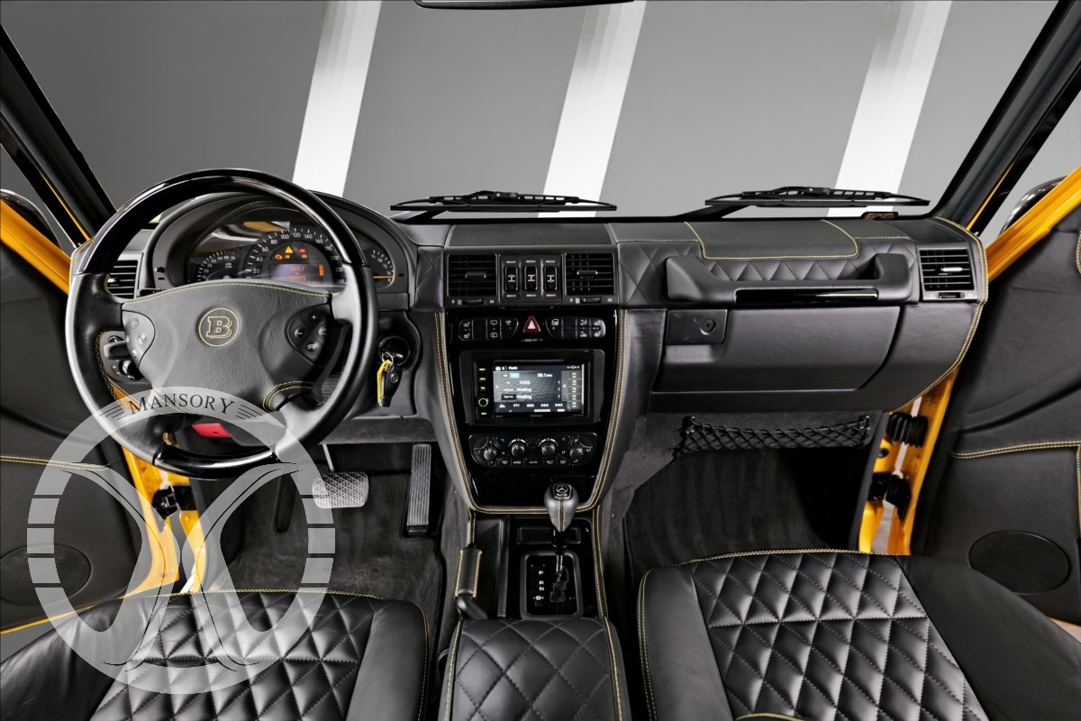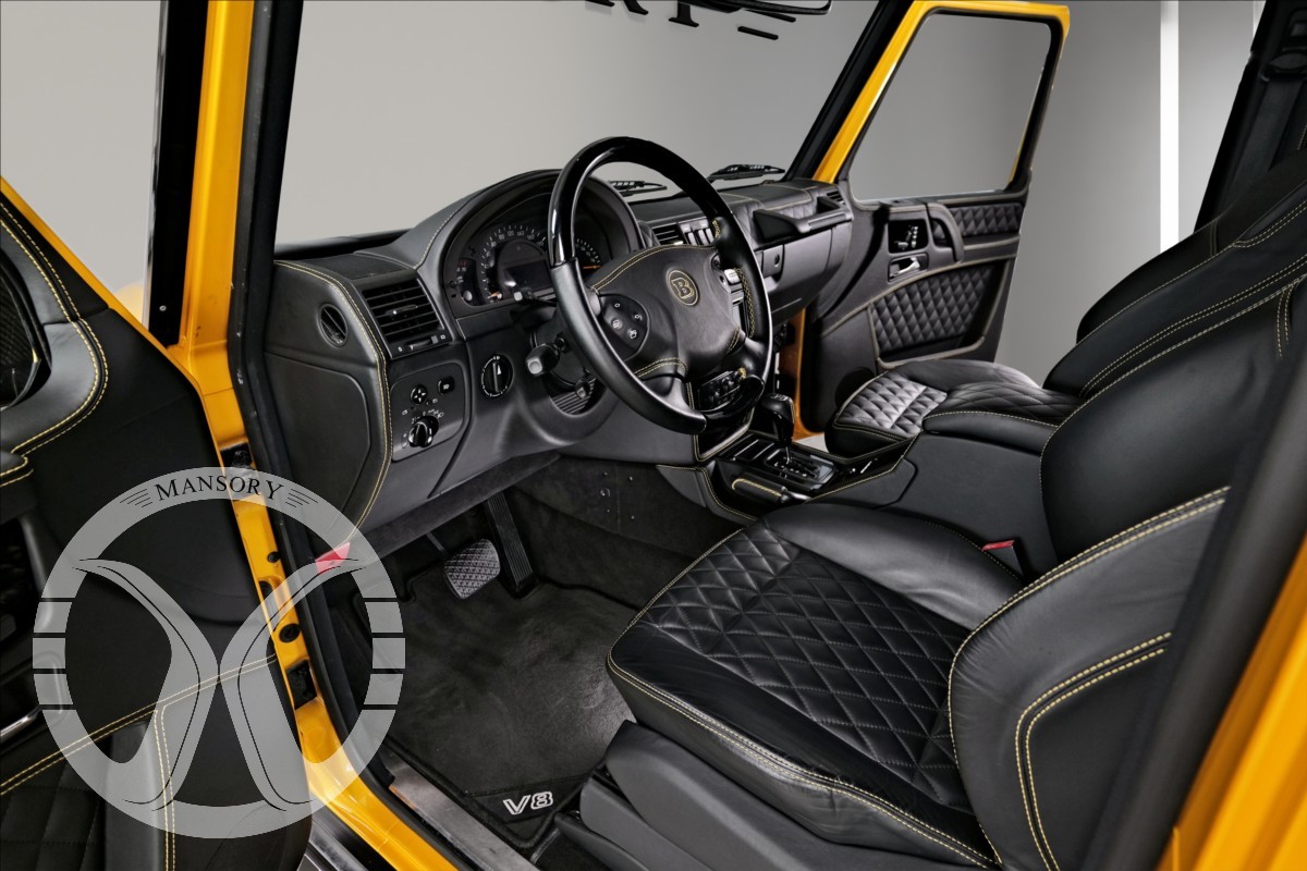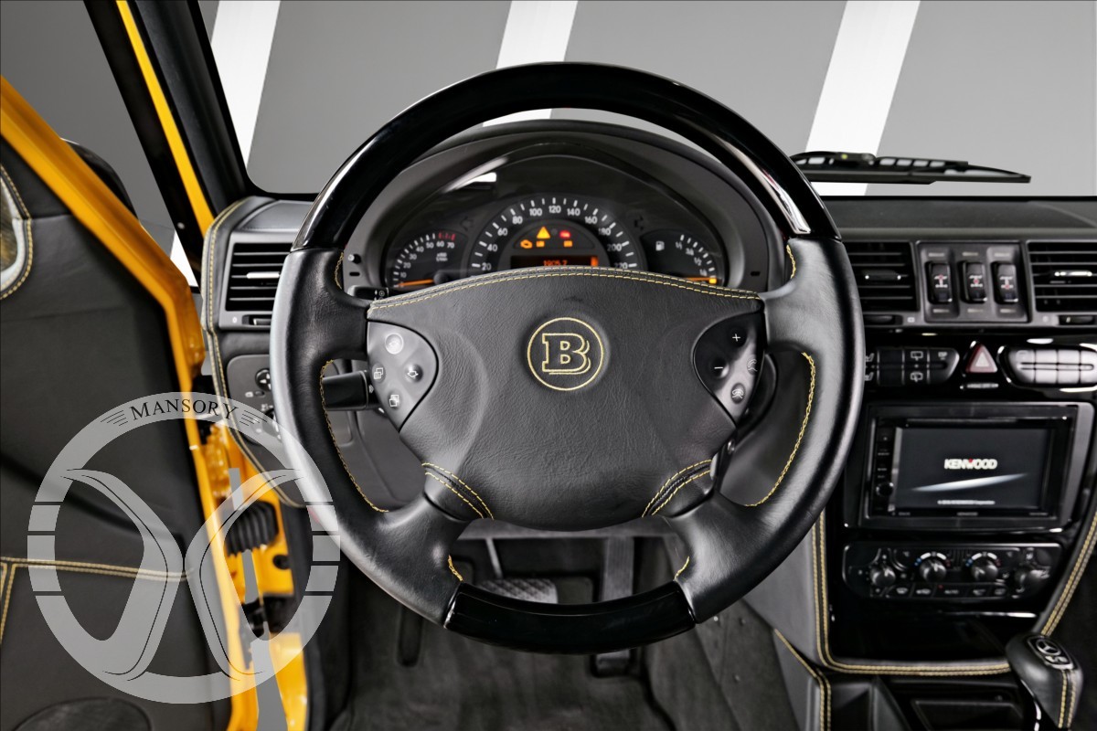 máme na prodej Mercedes-Benz G500 Coupé Brabus. Vozidlo je lakované v žluté metalické barvě. Interiér je v černé kůži s kontrastním žlutým prošíváním. Další výbava vozidla: 21 palcové kované disky Brabus
