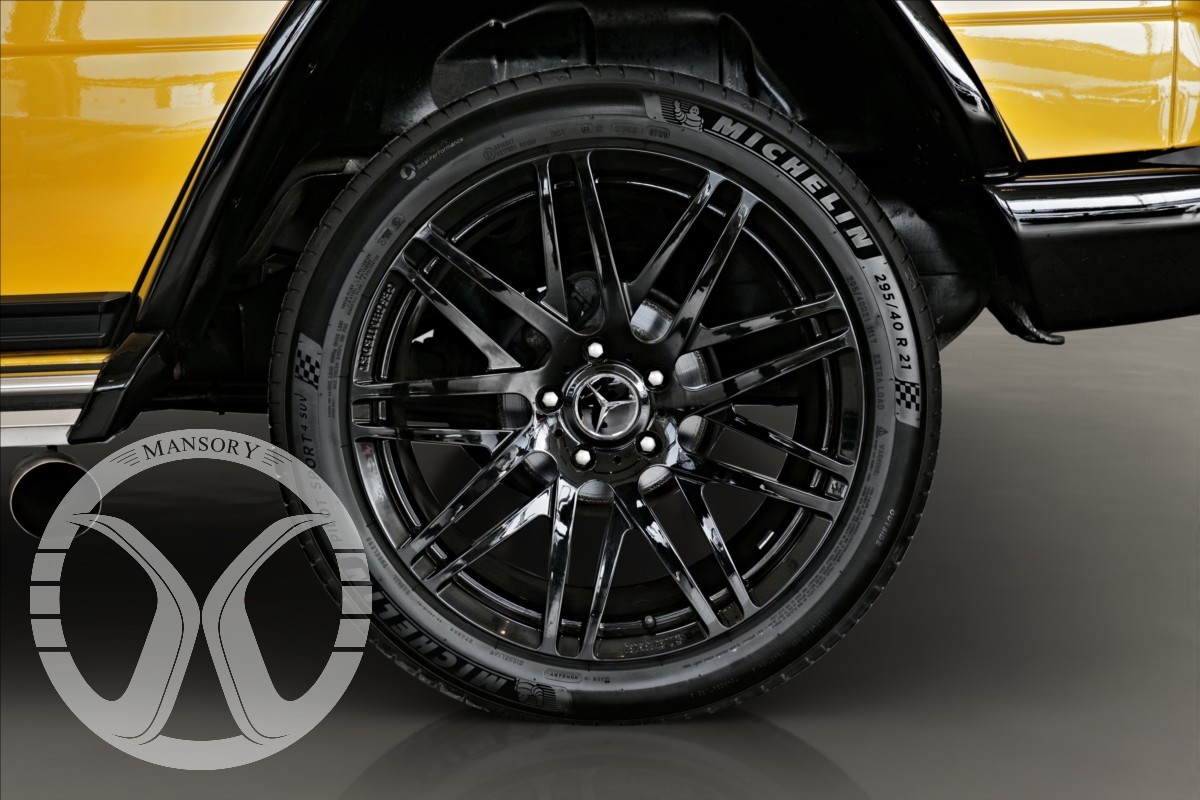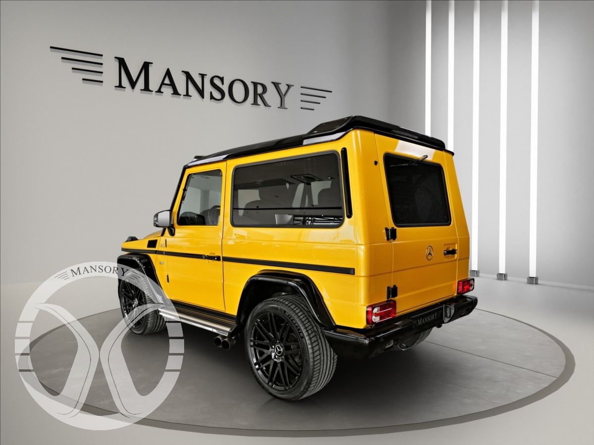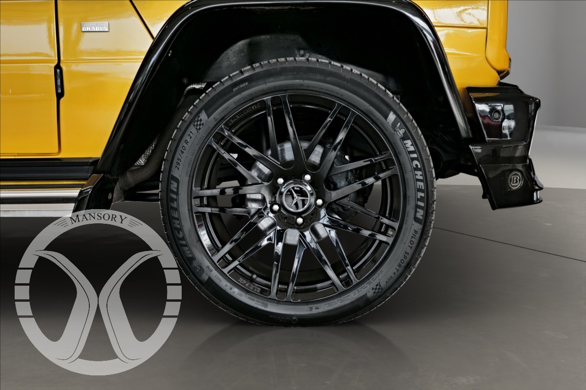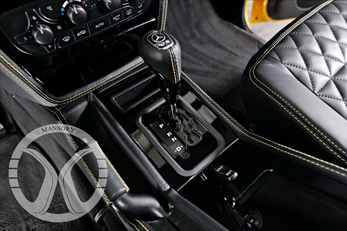 máme na prodej Mercedes-Benz G500 Coupé Brabus. Vozidlo je lakované v žluté metalické barvě. Interiér je v černé kůži s kontrastním žlutým prošíváním. Další výbava vozidla: 21 palcové kované disky Brabus