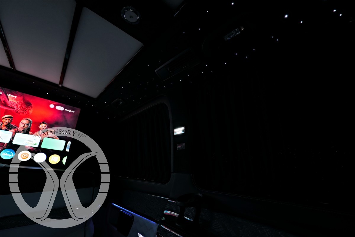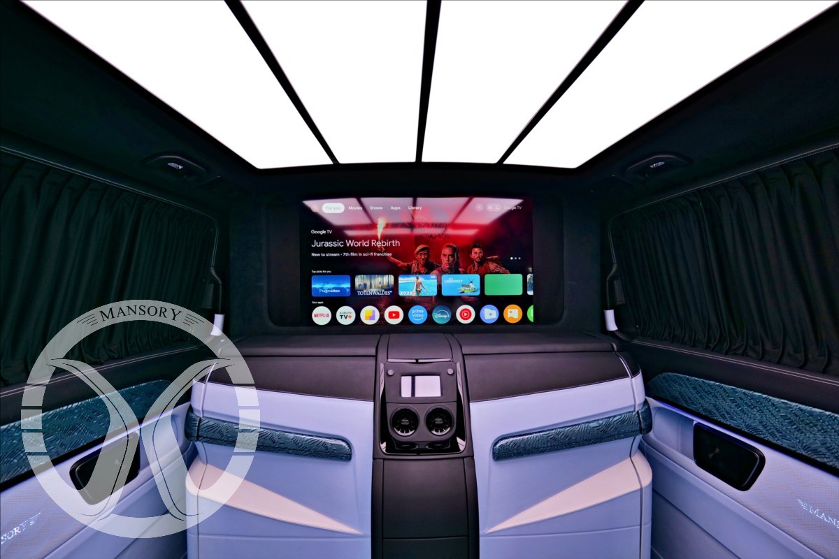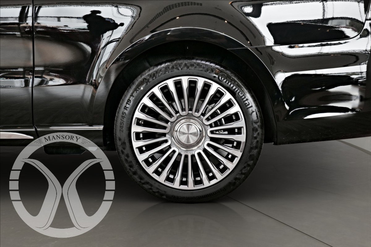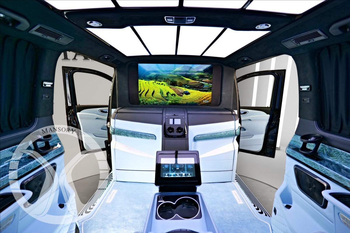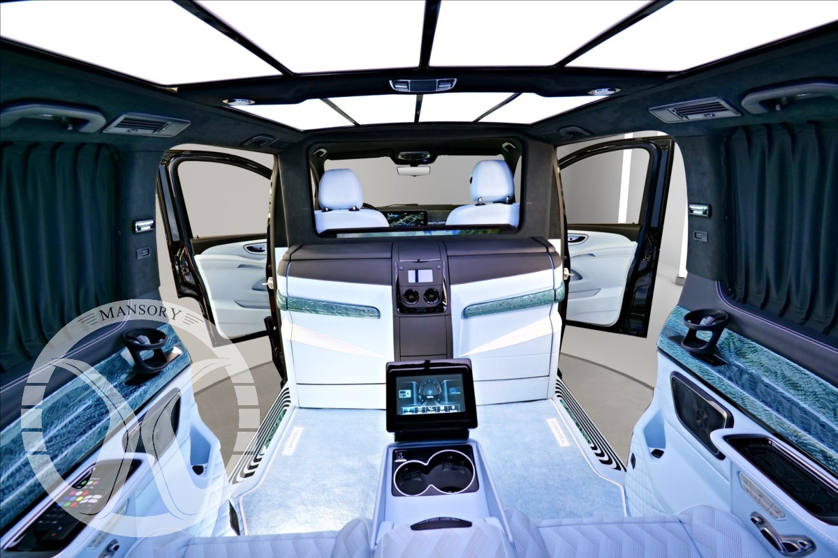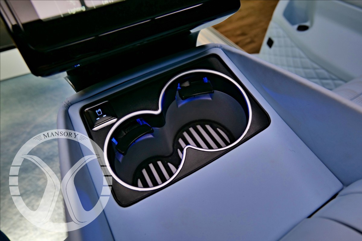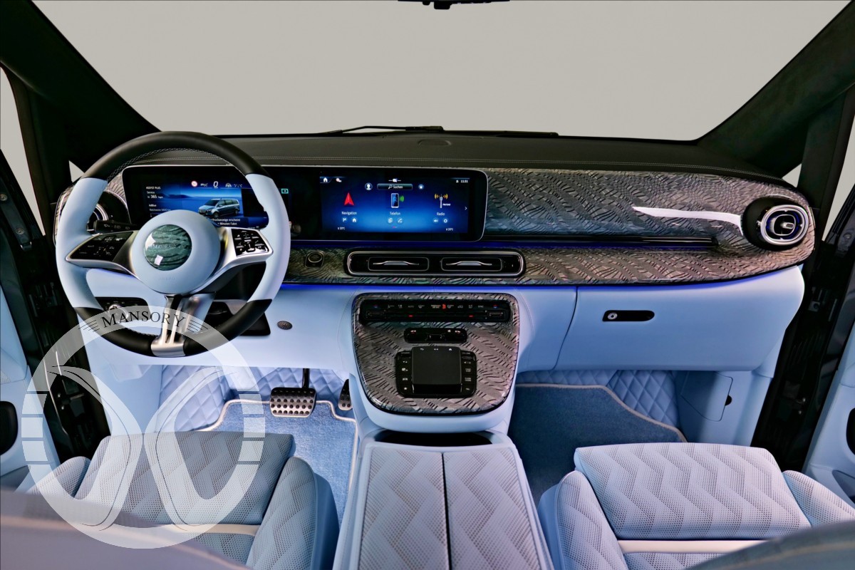 sedadla jsou upravena ve světle modrém koženém provedení v provedení VIP Class. Vozidlo je vybaveno 19' ALU disky Mansory. Další prvky vozidla jsou: vzduchové odpružení