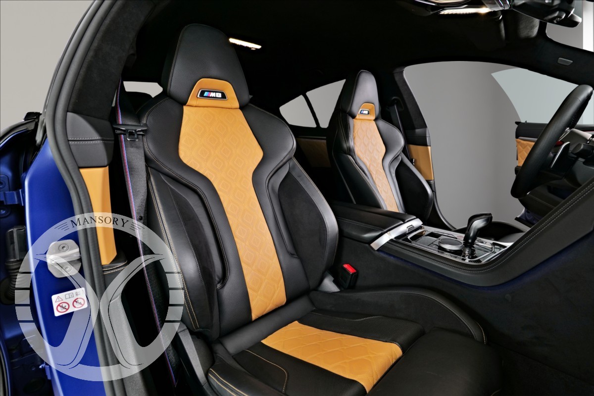 máme na prodej BMW M8 Competition Gran Coupé. Vozidlo je lakované v modré matné barvě (Frozen Marina Bay Blue) Interiér vozidla je černo hnědé kombinaci (Leder Merino Schwarz / Midrand). Další výbava vozidla:20 Palcové disky