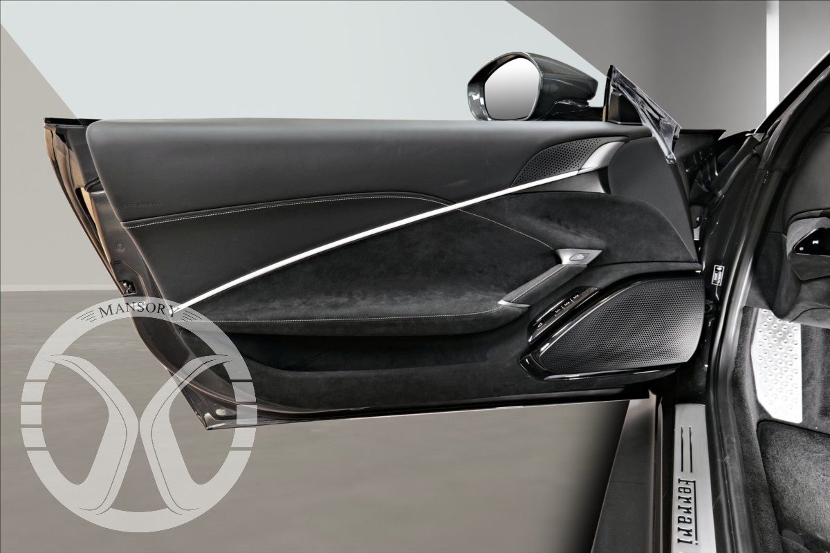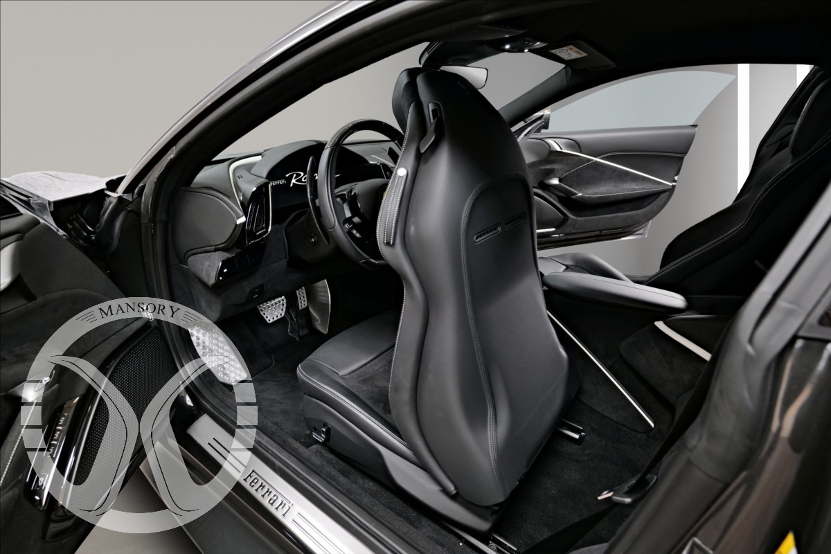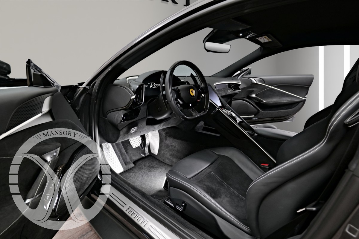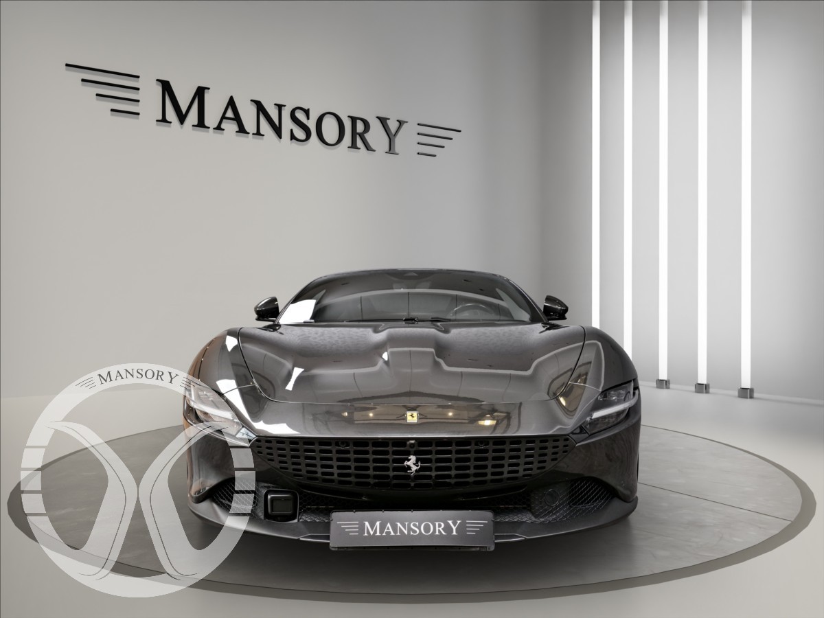 nabízíme Vám k prodeji Ferrari Roma lakované v šedé metalické barvě - Ferrari historical colours - Canna di Fucile. Interiér vozidla je v černém koženém provedení.