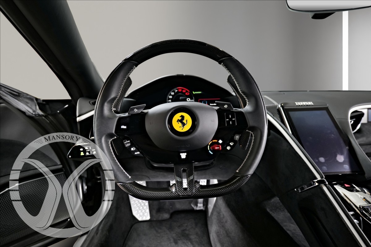 nabízíme Vám k prodeji Ferrari Roma lakované v šedé metalické barvě - Ferrari historical colours - Canna di Fucile. Interiér vozidla je v černém koženém provedení. Mezi hlavní prvky výbavy patří: Full ADAS systém - adaptivní tempomat