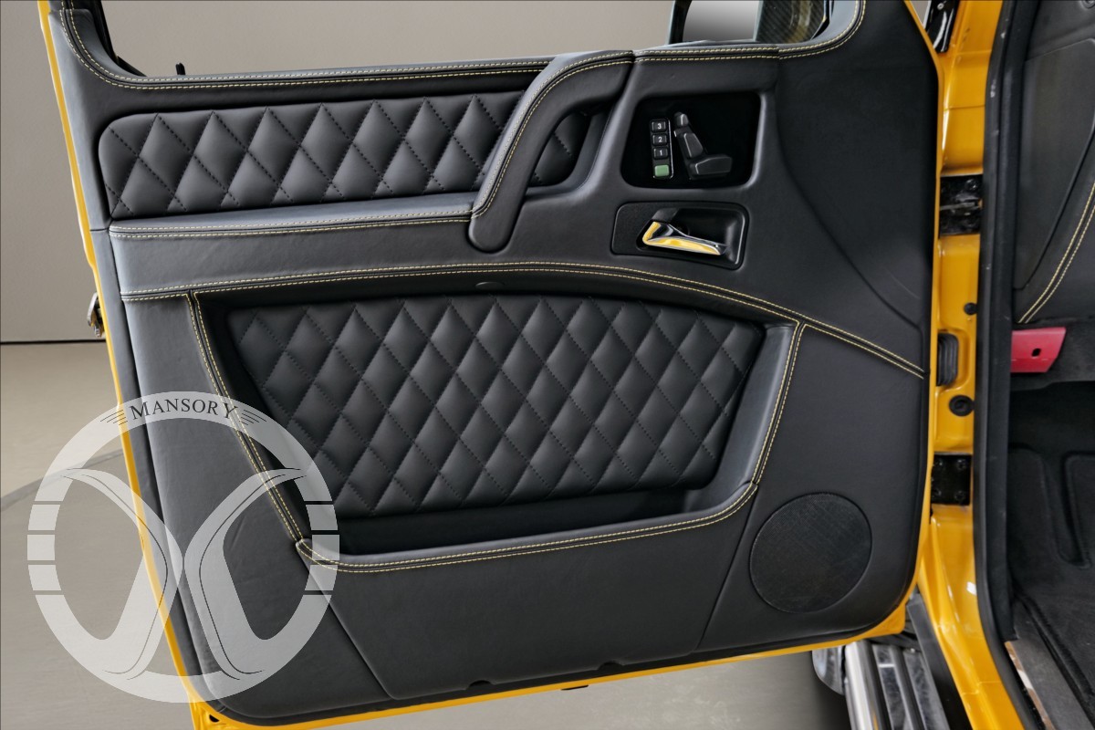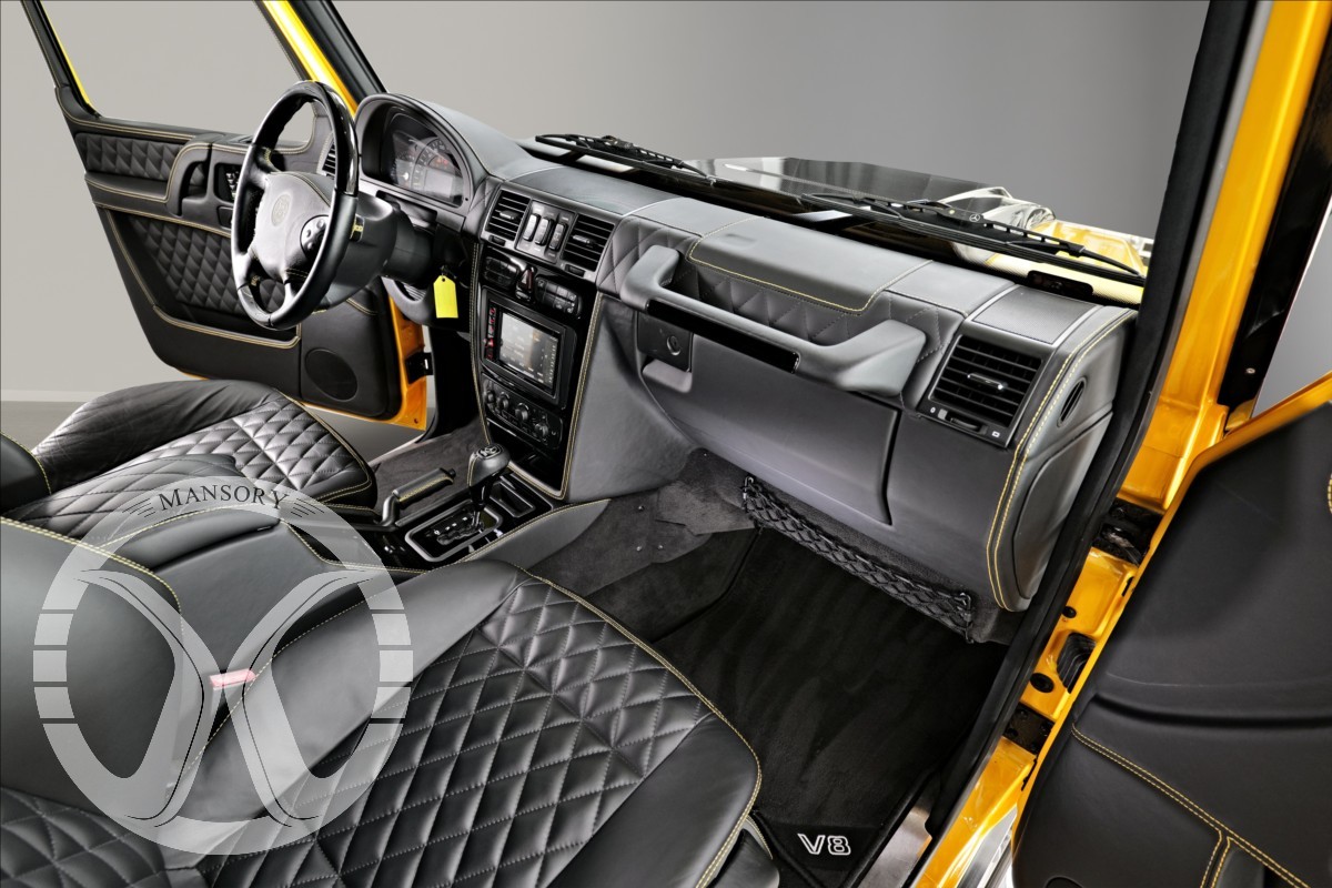 máme na prodej Mercedes-Benz G500 Coupé Brabus. Vozidlo je lakované v žluté metalické barvě. Interiér je v černé kůži s kontrastním žlutým prošíváním. Další výbava vozidla: 21 palcové kované disky Brabus